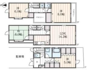 LDK 14.2帖、和 6帖、洋 8帖、洋 6帖、洋 5帖 |