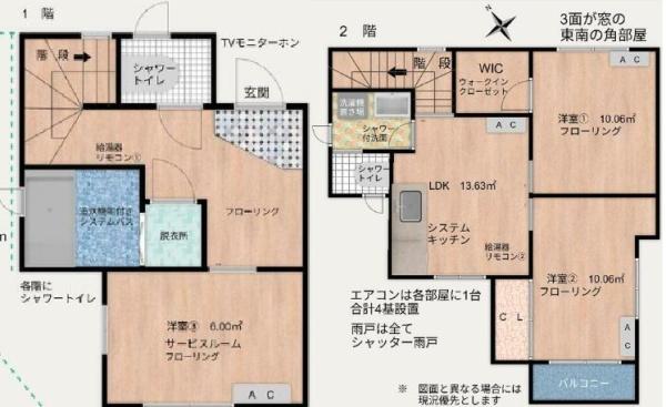 ガス(都市ガス)、水道(公営水道)、汚水(公共下水)、雑排水(公共下水)、閑静な住宅地、バイク置場、駐輪場、駐車場1台無料、日当り良好、部屋 南東向き、南面3室、2面採光、通風良好、バルコニー有、ダブルロックドア、火災警報器(報知機)、全居室洋室、全居室6帖以上、システムキッチン、ガスコンロ、コンロ 三口、グリル、キッチンに窓、給湯器、洗面所、洗面台、バストイレ別、バス専用、シャワー、温水洗浄便座、トイレ2ヶ所、エアコン有、フローリング、全居室フローリング、シャッター雨戸、室内洗濯機置場、収納、クローゼット、ウォークインクローゼット、CATV、BS、CS、TVインターホン、光ファイバー、保証人不要、二人入居可、即入居可、追い焚き、保証会社利用可、礼金1ヶ月、敷金2ヶ月、保証金不要、2沿線利用可、2駅利用可、駅徒歩10分以内、都市ガス、都市ガス給湯、非喫煙者限定、専用トイレ、子供入居可、初期費用 クレジット決済可、上水道(公営)、汚水(下水道)、全居室エアコン |