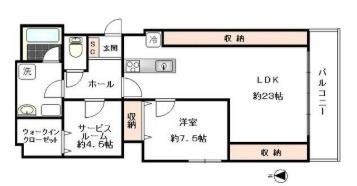 LDK 23帖、洋 7.5帖、洋 4.5帖、S 2帖 |
